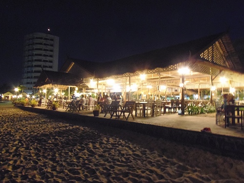 シーフードを食べれる店で、滞在先のホテルから近い場所、ということで選んだのが「プラトゥー」。店の外観は“大きな海の家”と言う感じ。なんといっても天井と床だけしかないので、開放感と言う点で言えば二重丸。おまけにこの店、ビーチの上にあるから、目の前は100パーセントの海。少し早めのディナーにすれば、海の景色もバッチリです。