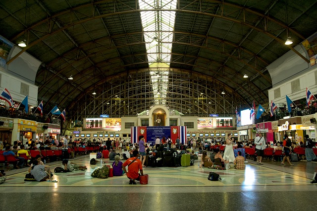 駅の中は、想像以上に旅行者が多く、みなさん、地べたで寝ている人も多く。