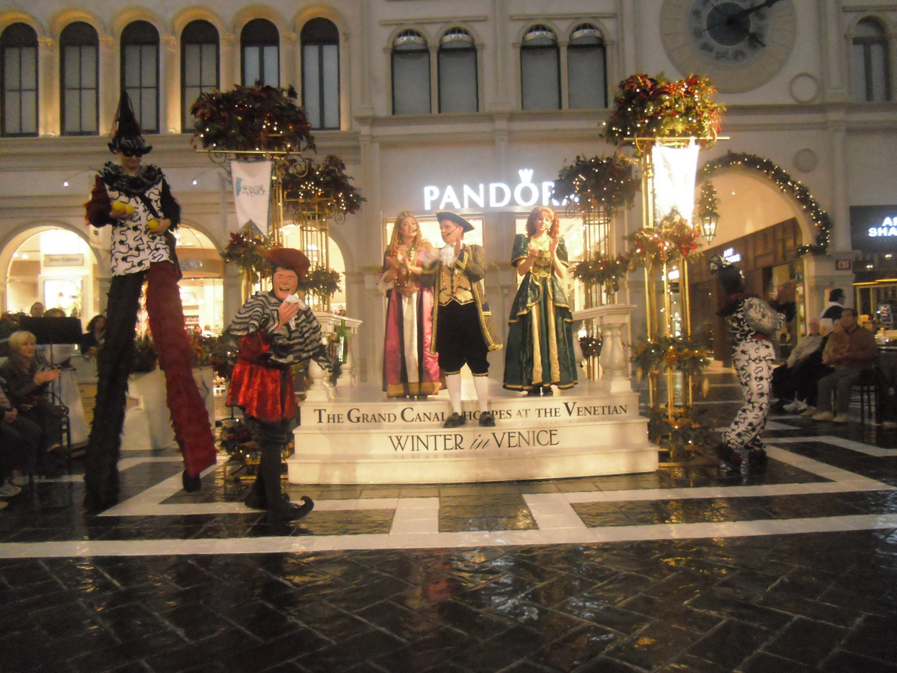 ベネチアンホテルのシヨップは、ゴンドラ遊覧(有料)できる運河沿いに有名ブランド店や、チョコレートのゴティバや、ベネチアンガラスや、ベネチアンマスクの店もあり、サンマルコ広場では、1時間ごとに、無料のショーを見せてくれます。椅子に座って、ジェラードを食べながら見物します。