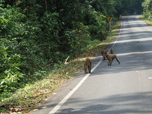 車の窓を開けてサルの一団の撮影していると、中でも身体が大きいサルが、明らかにカメラに視点を合わせ、ソロリソロリと近づいてくる。「窓を閉めて!」と言われて、慌てて閉めたから良かったものの、次の瞬間にサルはサイドミラーに飛び乗ってきた。