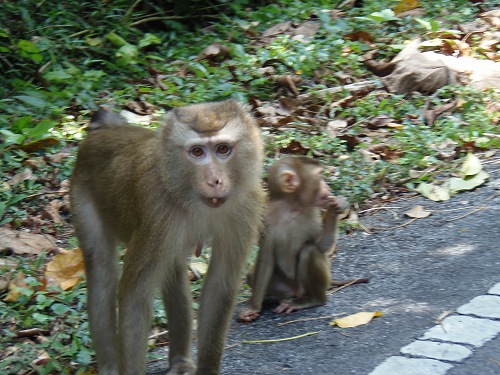 後ろの車には、3,4匹のサルが次々よじ登っている。子供が見たら大喜びしそうだ。