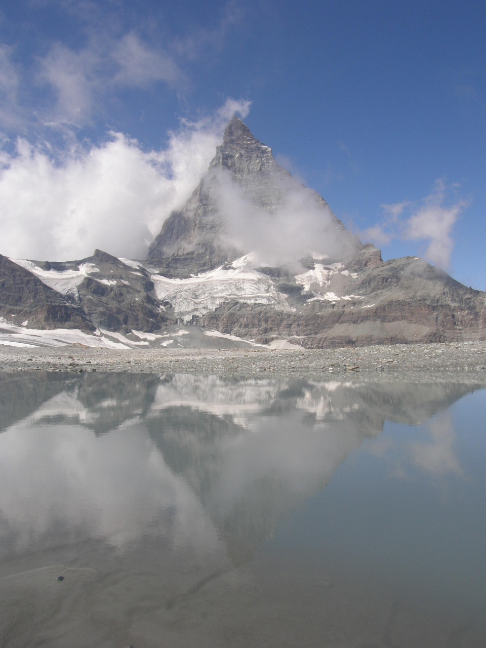 マッターホルンの周辺には高い山がないため、他の有名なヨーロッパアルプスの山より際立って大きく見え、その姿に圧倒されます。
