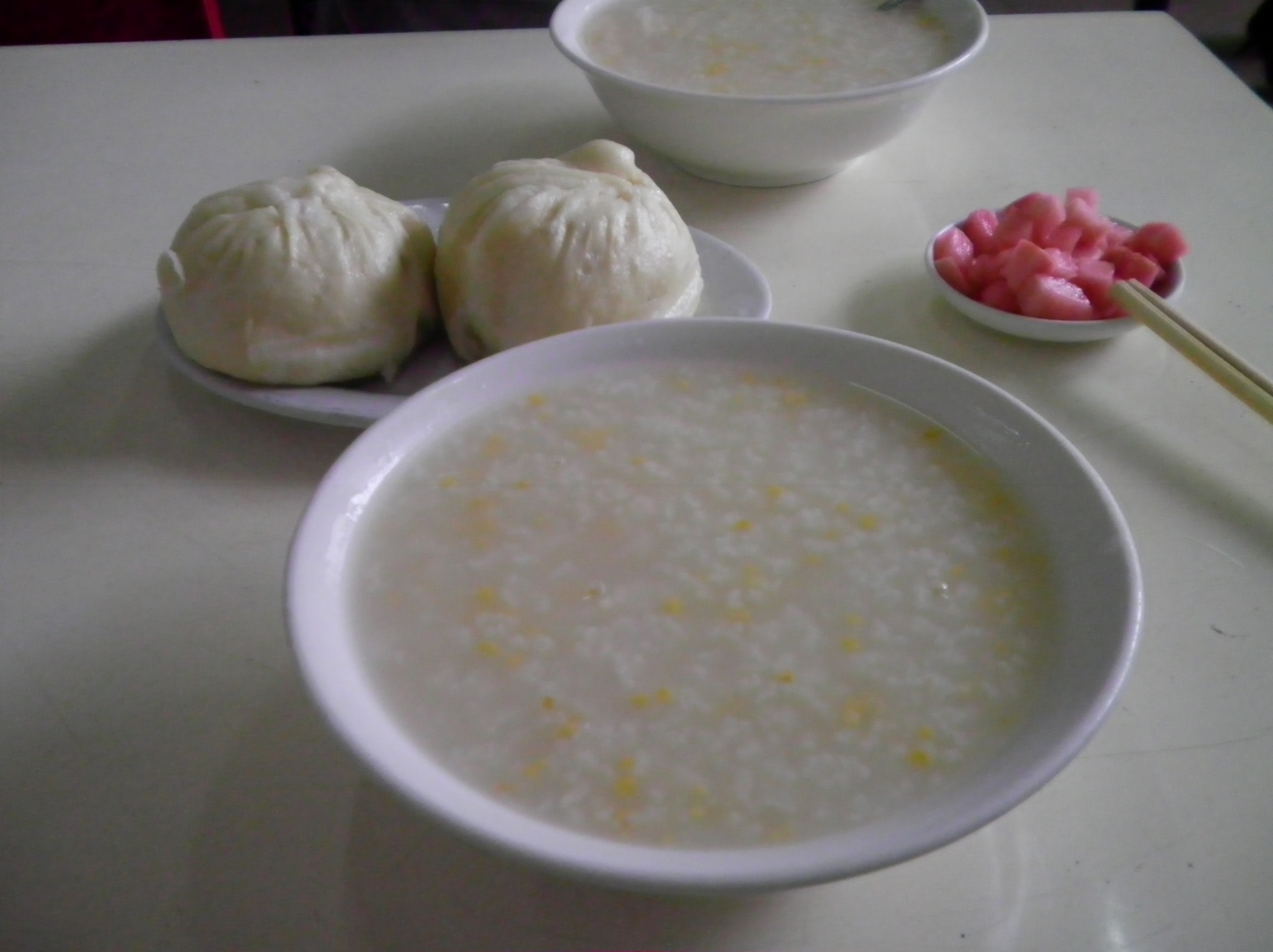 大抵の庶民が野菜マンとお粥で朝食。これらが絶妙にウマイ。安い。