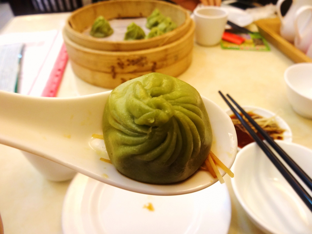 雑誌に載っていた、ショウロンポウの小さいカンジのやつを食べようと思いましたが、人気の為、品切れとのことで、烏龍茶小龍包をたべました。きれいな緑色で、あじもよかったです。