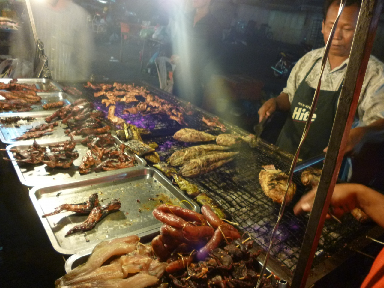 夜にはオルセーマーケット前に屋台が現れ、炭火焼の肉などが食べられるのでこちらもお勧めである。