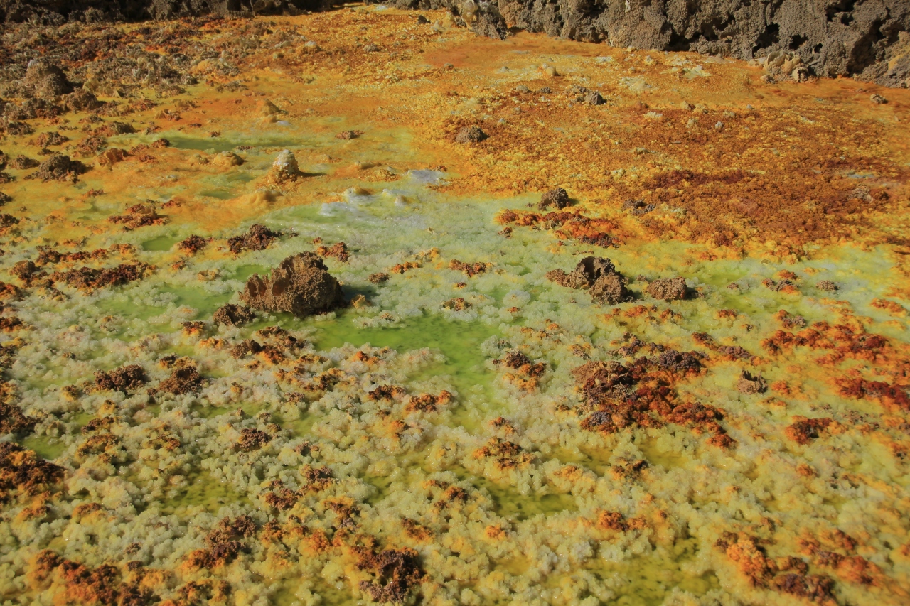 後者では硫黄によって緑や黄色の不思議な色合いを見ることができます。