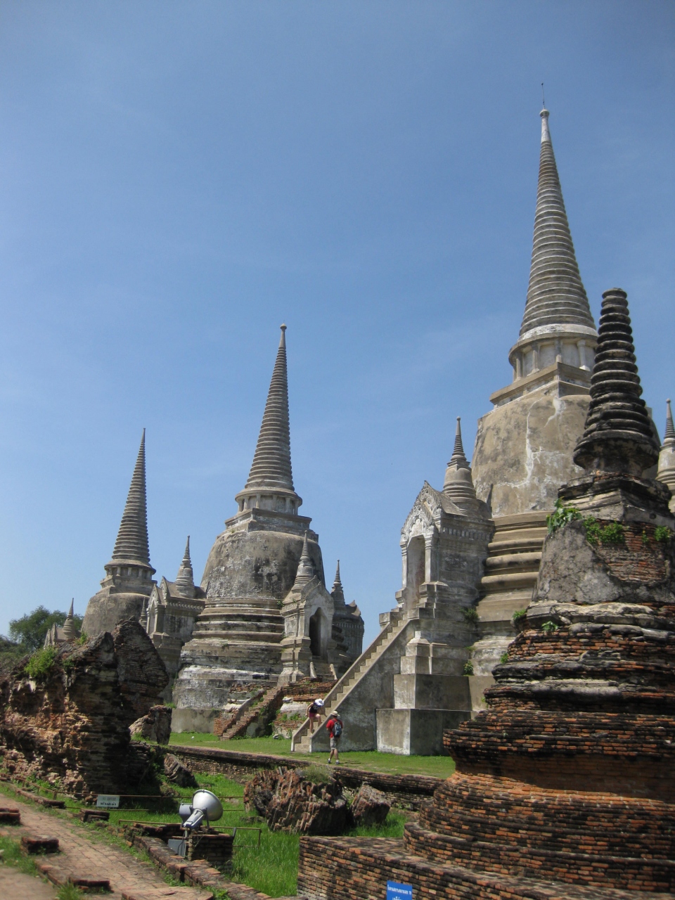 セイロン様式の3基の仏塔が特徴的です。 見応えがある遺跡ですが、他の建物はビルマ軍に破壊され、崩れたままの状態で、少しもの悲しい雰囲気が漂っています。