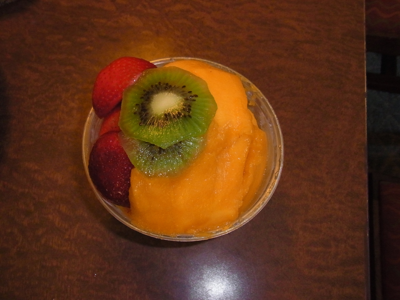 フルーツはパイナップル、いちご、マンゴーのカットフルーツ