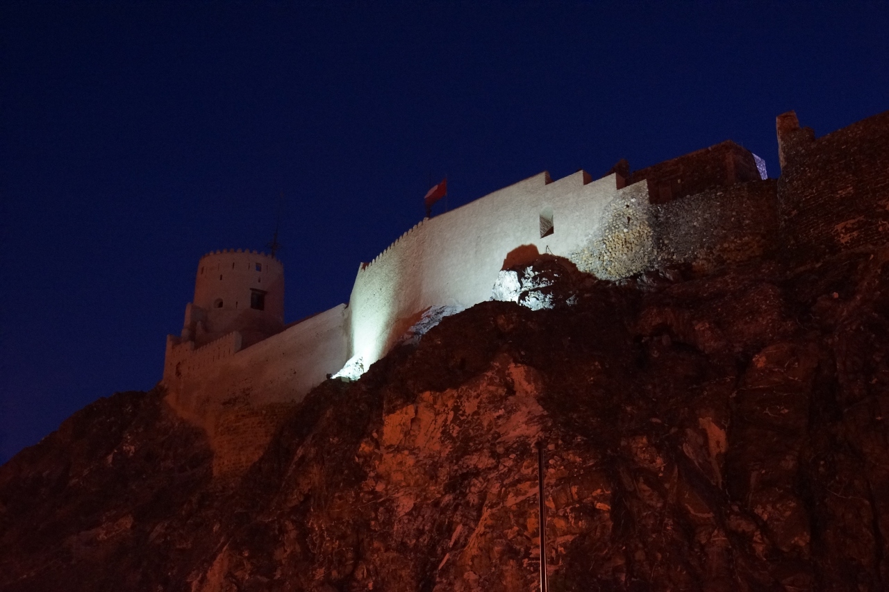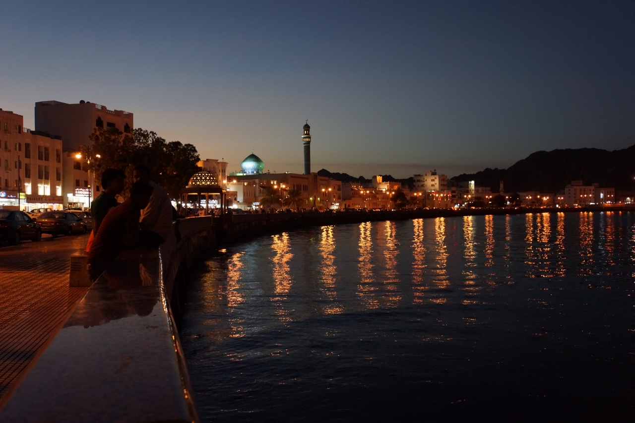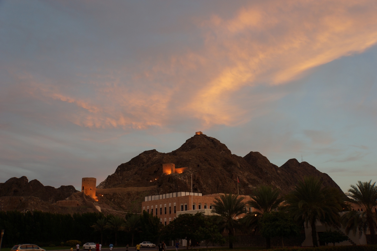 年末の休みを利用してオマーンのマスカットへ行ってきました。冬ですので日中でもそんなに暑くはなく、街歩きは可能です。でも日が沈むと涼しさが増し、散歩するには最高です。ルイ・マトラ・オールドマスカットは2キロ間隔ぐらいですが、タクシーでは、1リアルくらいだということでしたが、ルートタクシーがたくさん走っていて、0.1リアルで利用できるので便利です。道端に人が立っているので、なんとなく停留所はわかります。でも日が沈んで涼しくなれば、海岸沿いの道をぶらぶら歩いた方が気持ちがいいと思います。観光客や地元の人も結構歩いているので、治安の問題はまず大丈夫だと思います。ライトアップされたモスクやお城は最高です。