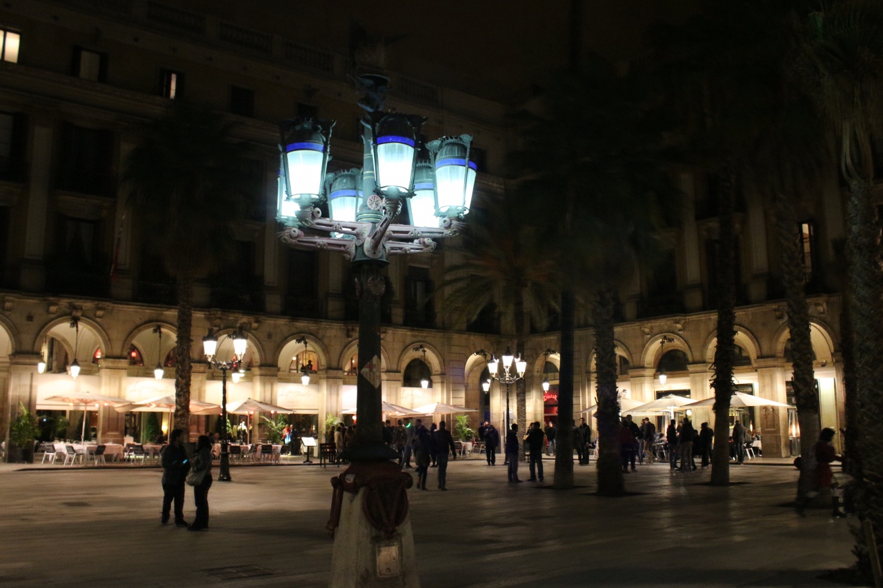 レイアール広場といえば、ガウディの街灯のある場所として有名です。ランブラスから一本はいった場所にある広場は、緑もあり四角い石畳みにアクセントを加えてくれます。