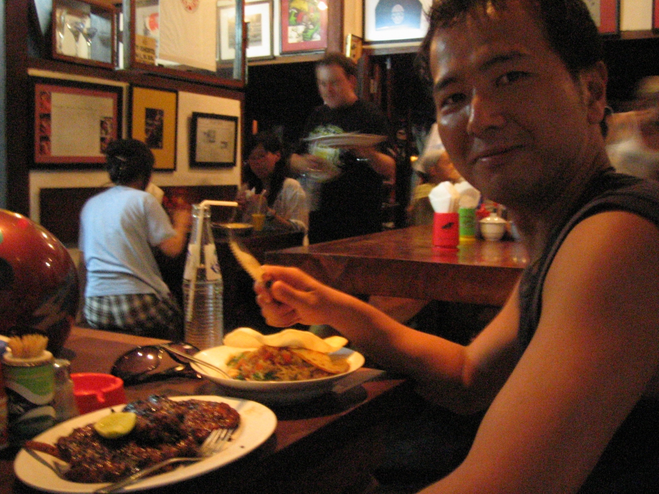 スペアリブ!!美味しいが、何でも頼んだ肉は美味しかった。近くにナチョママという姉妹店もあるが、味はおなじです。どちらでもいいので腹ペコ時に飛び込んで下さい。ウブドのお気に入りになるはずです。おばさんが沢山働いている元気なお店です。西洋人が多いですね。