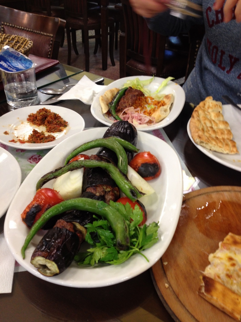 あまり期待せずにオーダーしましたが、ピデが美味しい!しかも、ケバブとナスが交互に刺されている串焼きも美味しかったです。