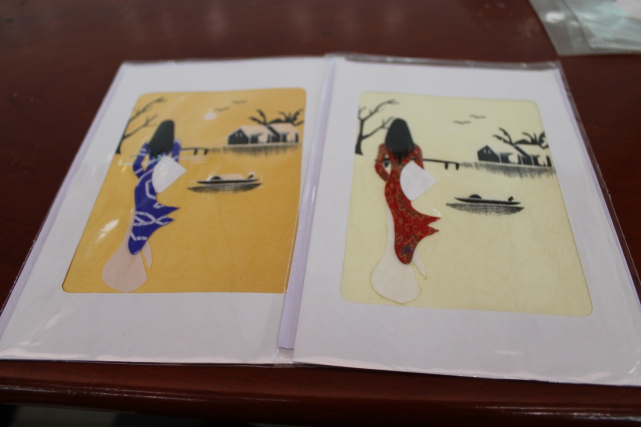 気に入った葉書を買い、記入し、切手コーナーに持って行き、宛先の国を言うだけです。