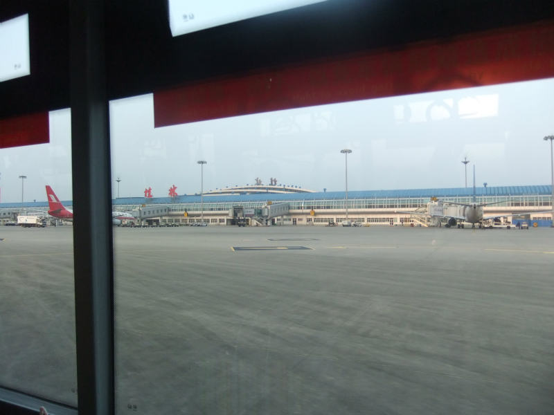 1時間遅れで到着したGS6611便。雨が上がったところだったようだ。飛行機からバスに乗り換え時に降っていなくてさいわいだった。毎朝雨上がりの天気だった。