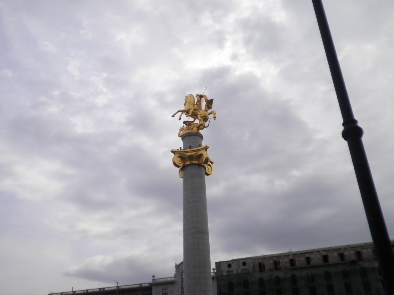 国名の語源?ゲオルギ神の像が真ん中に立つ景観。その像が黄金色なので目立つ。