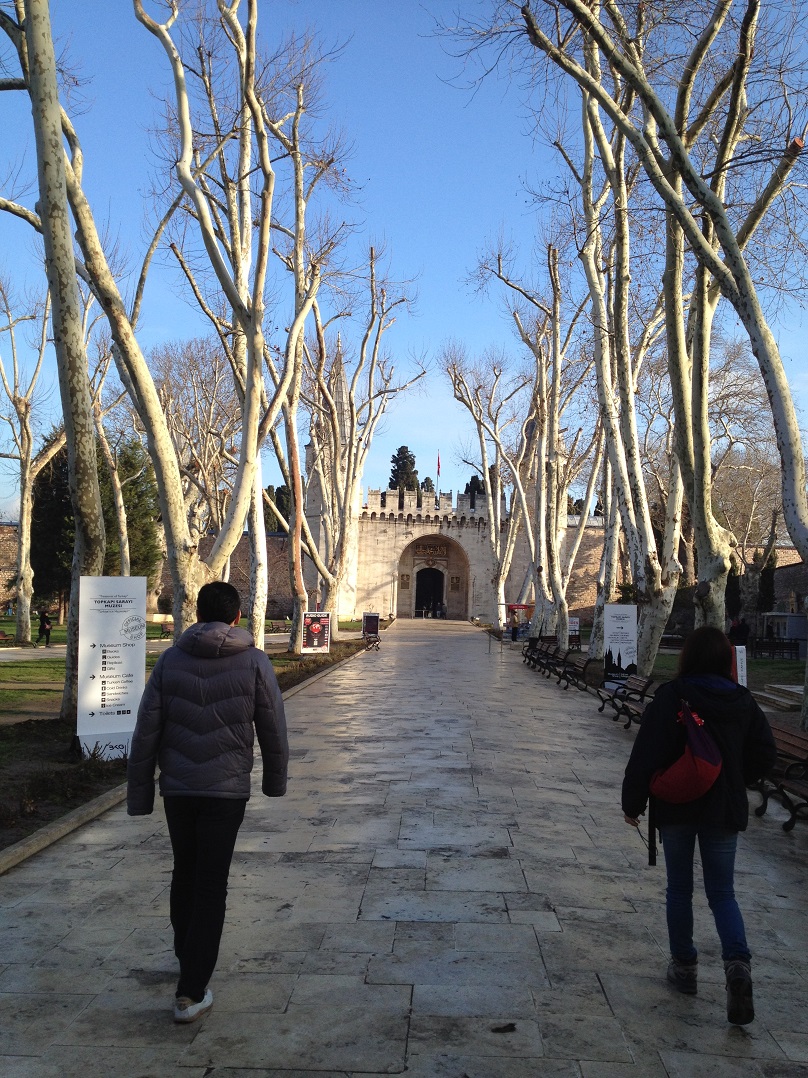 トプカプ宮殿で最初にくぐる門が皇帝の門であり、観光客にとってはワクワク感をパワーアップさせてくれる門です。中に入ると、広い庭に出ます。そこには野鳥が沢山いて観光客の良い被写体になってました。庭には教会などもありますが、ここで時間を食ってしまうと時間がもったいないのと、時間が遅くなると混み始めるので、中庭周辺は最後に見て回ることをおすすめします。