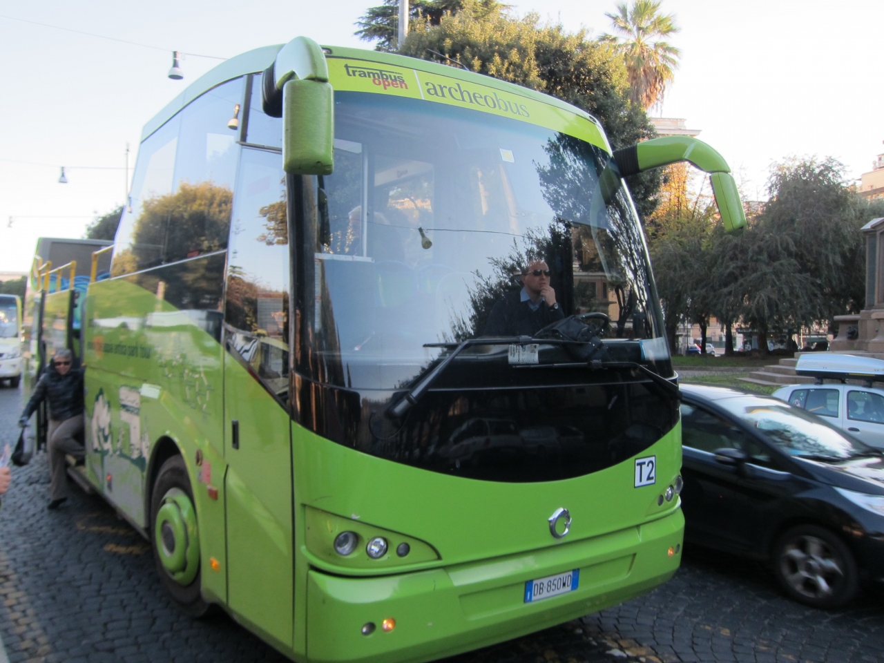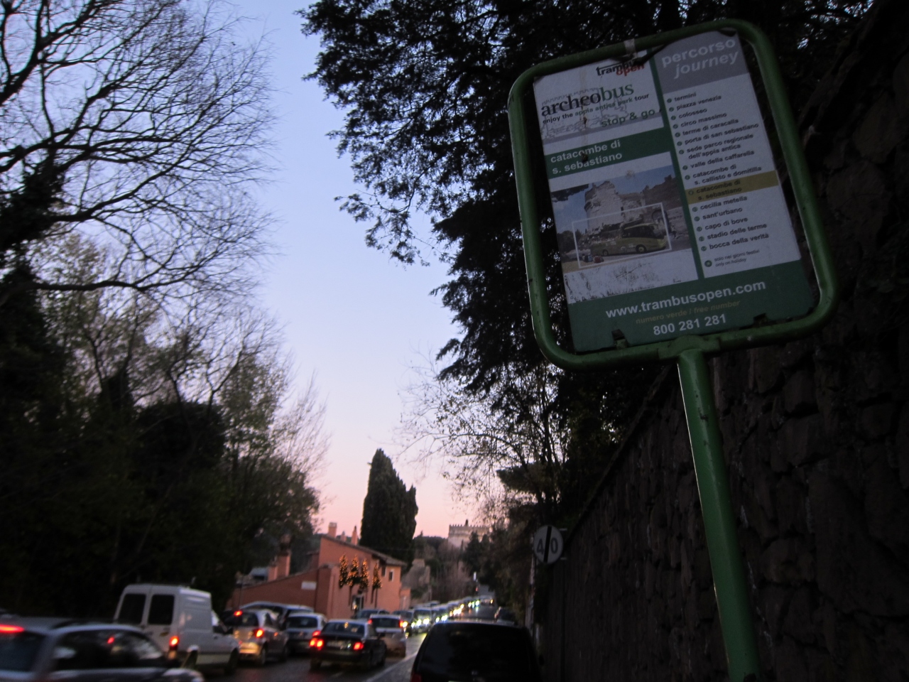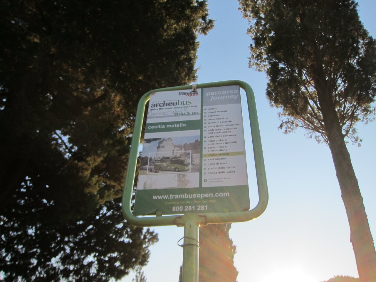 テルミニ駅前からでているArcheoバスで巡りました。チケット売り場でフリーパスチケットを買い、バスプールから通りを1つ隔てた小さい方のバスプールから出ています。運行状況にもよるのでしょうが、出発時間ぎりぎりにならないと来ませんでした。黄緑色の車体のバスなのでよく分かります。基本、オープンデッキなので走行中は風が強く、少し寒く感じました。メテッラの墓やサンセバスティアーノのカタコンベを見ましたが、時間があまりありませんでした。ルートはアルケオバス以外にも路線バスがでていますが、本数は少ないです。多少、徒歩を交えて移動しましたが、狭い石畳の道をたくさんの車が猛スピードで往来しています。サンセバスティアーノのカタコンベあたりまでは意外と交通量が多いです。街道巡りにはやはり丸1日必要だと思います。