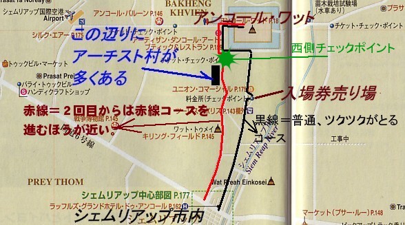 アンコール遺跡群を2日以上見学する場合、2日以降は西側チェックポイント直接コースが近道