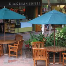 オアフ島内に5店舗、ビッグアイランドのヒルトンワイコロアビレッジにも店舗があるキモビーンですが、ロケーションが最高なのはここハイアットリージェンシーのキモビーンだと思います。コーヒーを味わうのはキモビーンの店内ではなくオープンエアで滝の眺めを存分に楽しめるリゾート気分いっぱいのテーブルです。まさに特等席という雰囲気で、ゆっくりとコーヒーを飲みながら寛ぐことができます。