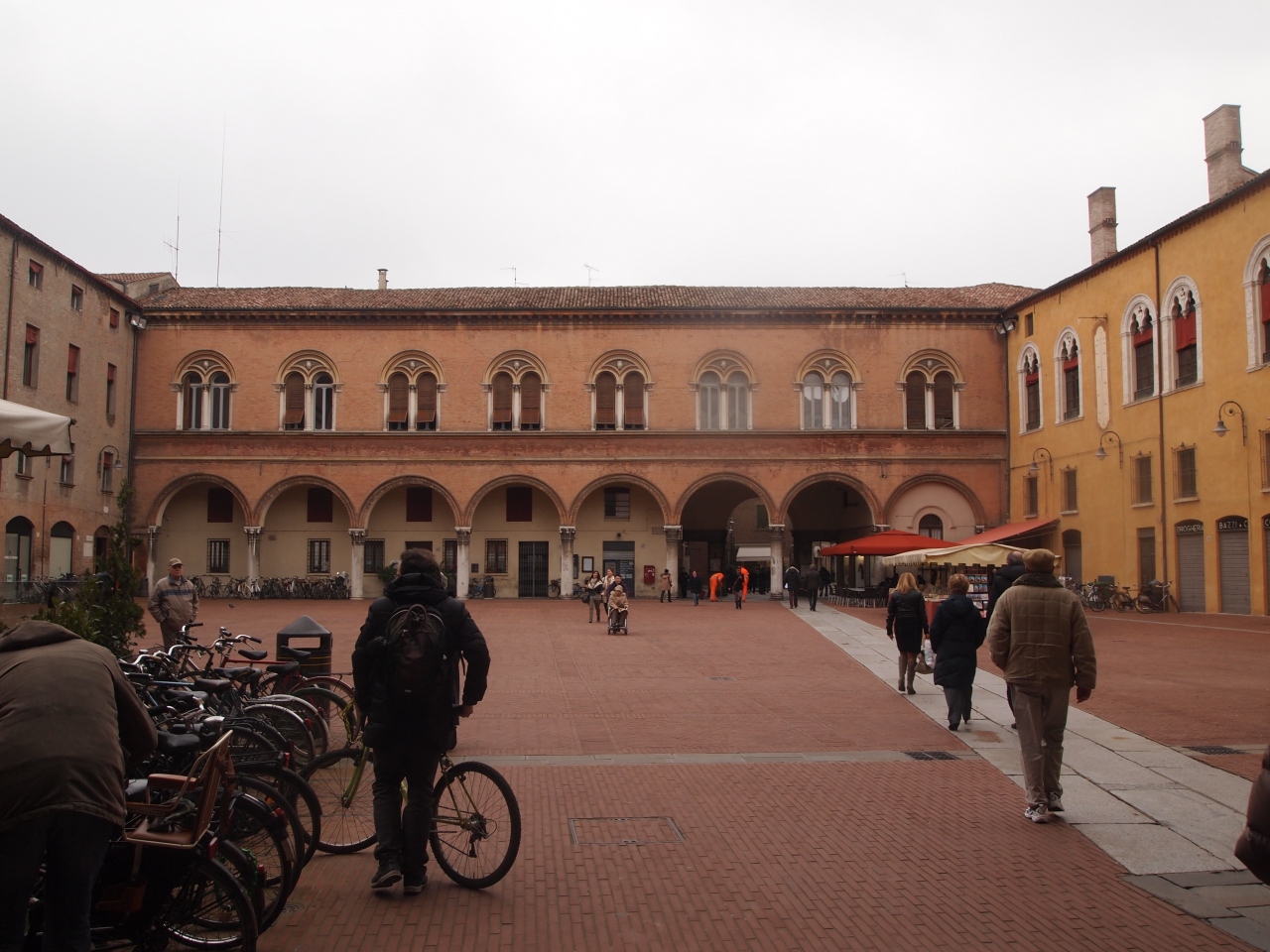 1階には商店が入っています。フェラーラの歴史を感じる建物です。