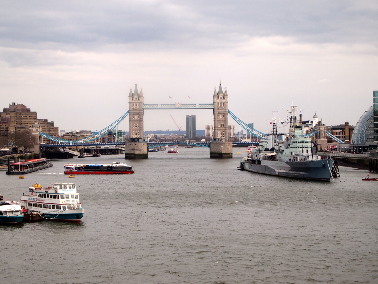 私はタワーブリッジを見るならば、一つ手前のロンドン橋で見れば、きれいなハズと思っていました。