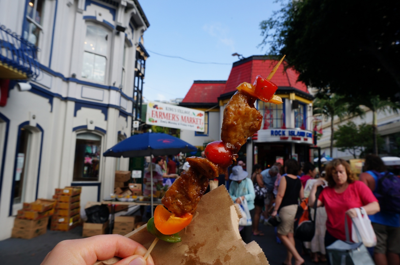フルーツ盛り合わせが$4・バーベキューポークが一本$2など、リーズナブルです。