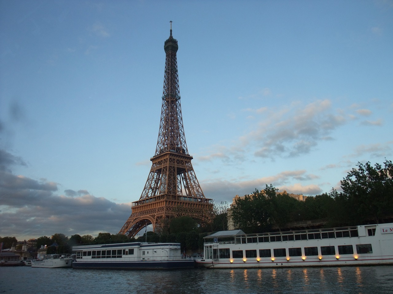 ちょっと寒かったですが、船上から夕暮れのエッフェル塔を