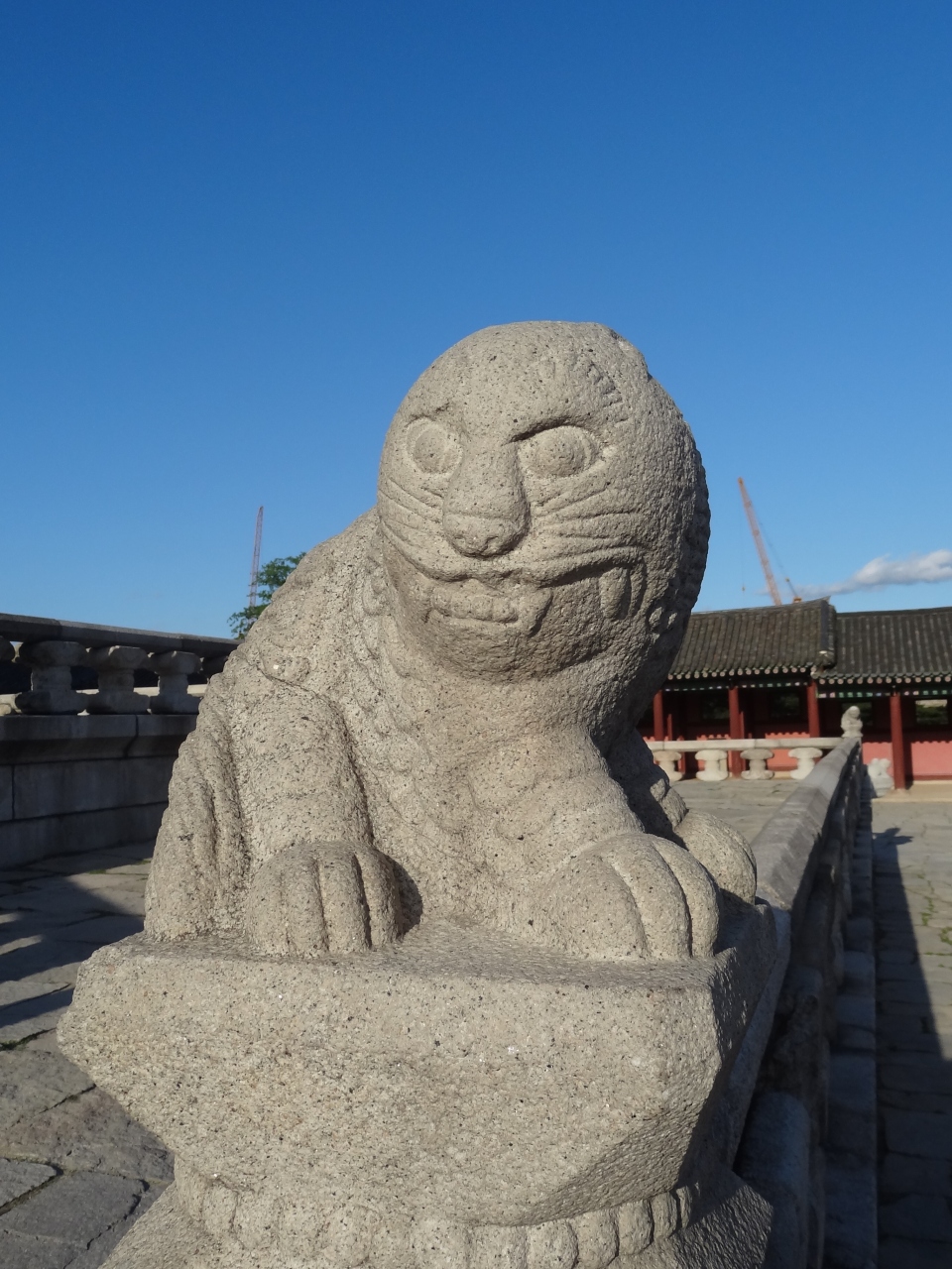 李朝の正宮・景福宮、広大な敷地内にある数々の建造物は見応えがあります。細部もよく見ると面白いものが沢山あって、建造物を装飾している石像もその中の一つ。動物の石像が色々あるのですが、どことなくコミカルな感じがしてカワイイ‥。探してみて下さい。