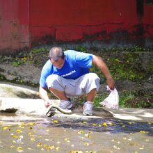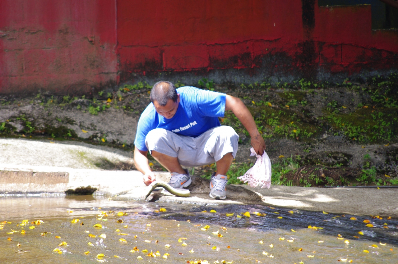 滝近くの川辺ではスタッフのお兄さんが何か魚を捕まえてさばいていたので「なにやってるの?」と聞いたら「うなぎが捕れたから食べるんだ」と答えてびっくりしました。