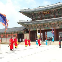 景福宮では休館日の火曜をのぞく毎日、10:00~15:00の定刻に10~15分間、開催されます(1月・2月・7月・8月・12月は10:00~16:00に略式で開催)。