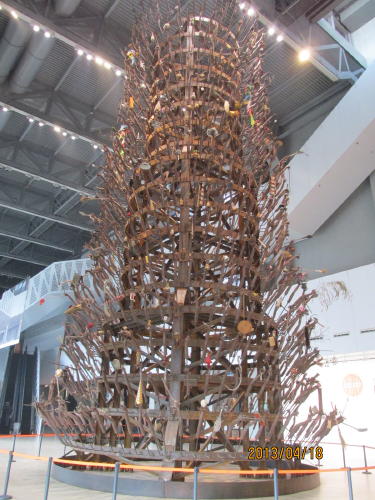 高い煙突が遠くからでも良く見える、これは1897年に建てられた南市発電所でした。建物の長さ128m、幅50m、建築面積31088?、高さ165mの煙突を持つ。近代工業化の推進役として活躍しました。世博時に改装し主題館(城市未来館)となった。更に2012年10月1日上海当代芸術博物館として再び蘇りました。南市発電所としての建物は天井が高く大きな芸術作品も展示する事が容易です。改装後の建築面積は4万?、展示面積1.5万?あり12個の展示場を持っている。開場時間9時から17時(16時入場停止)入場無料、特別展は有料。