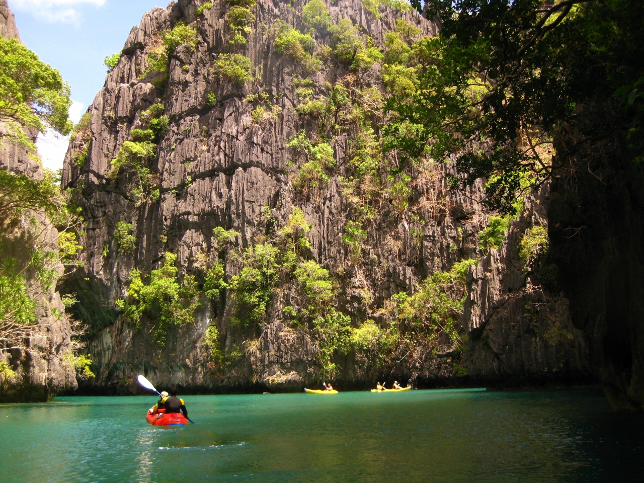 エルニドのリゾートに宿泊すればビッグラグーン・スモールラグーンのアクティビティに参加できます。アイランドホッピングをしながらラグーンのなかに船ではいり、そこから自分でカヤックをこいで、中を探検します。二人一組で漕ぐのですが、息が合わないと見事に転覆、これはこれで楽しい体験でした。