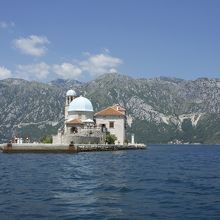 昔の人が船を沈めて、人工の島を作り出した上に建っている教会です。