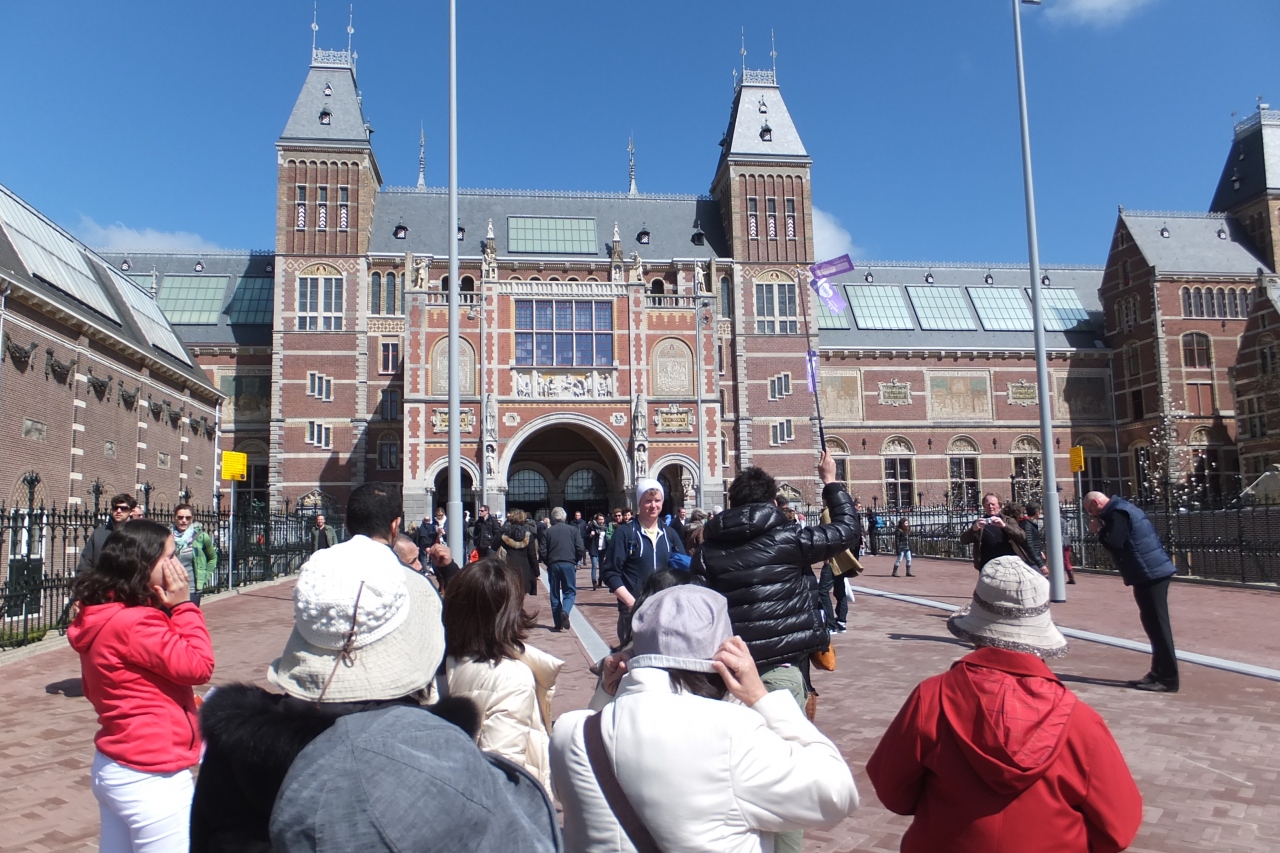 見るべきものを初めからガイドが案内して後は30分ほど自由行動だった。オランダ最大の博物館で絵画の豊富なコレクションがあり、建物も重厚な建築物で、この広場には入場する人であふれていた。」