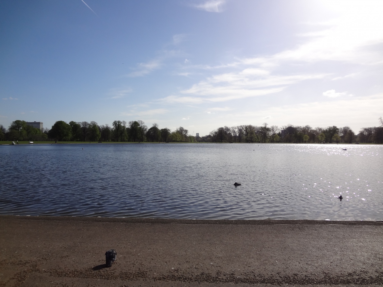 広くて緑が多くて、走っている人、犬と遊んでいる人がたくさんいます。