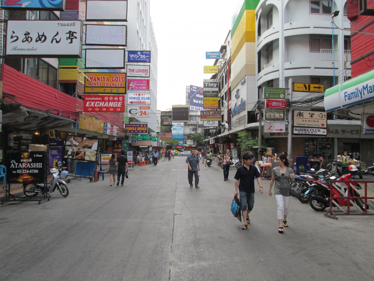 BTSサラディーン駅を降りてすぐの通りです。プロンポン駅と並んだ2大日本人街です。こちらは飲み屋さんが多く、どちらかというと夜の街です。私は、レートの良い両替店(むらさき薬局、リカーショップ)があるので、滞在中1回は訪問します。