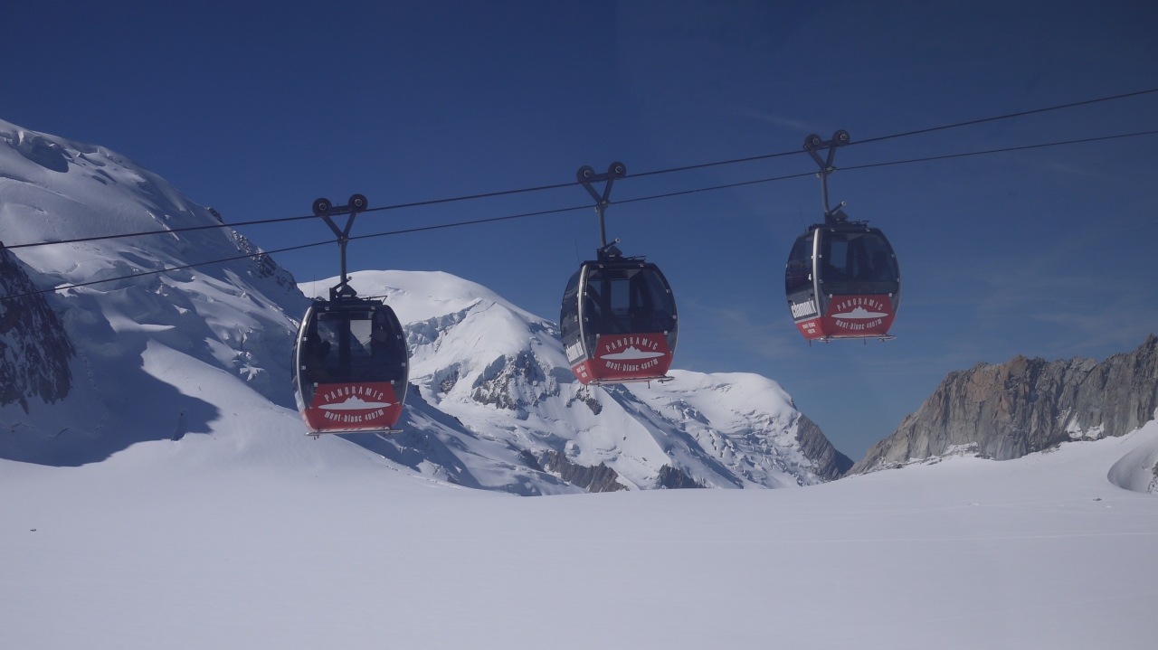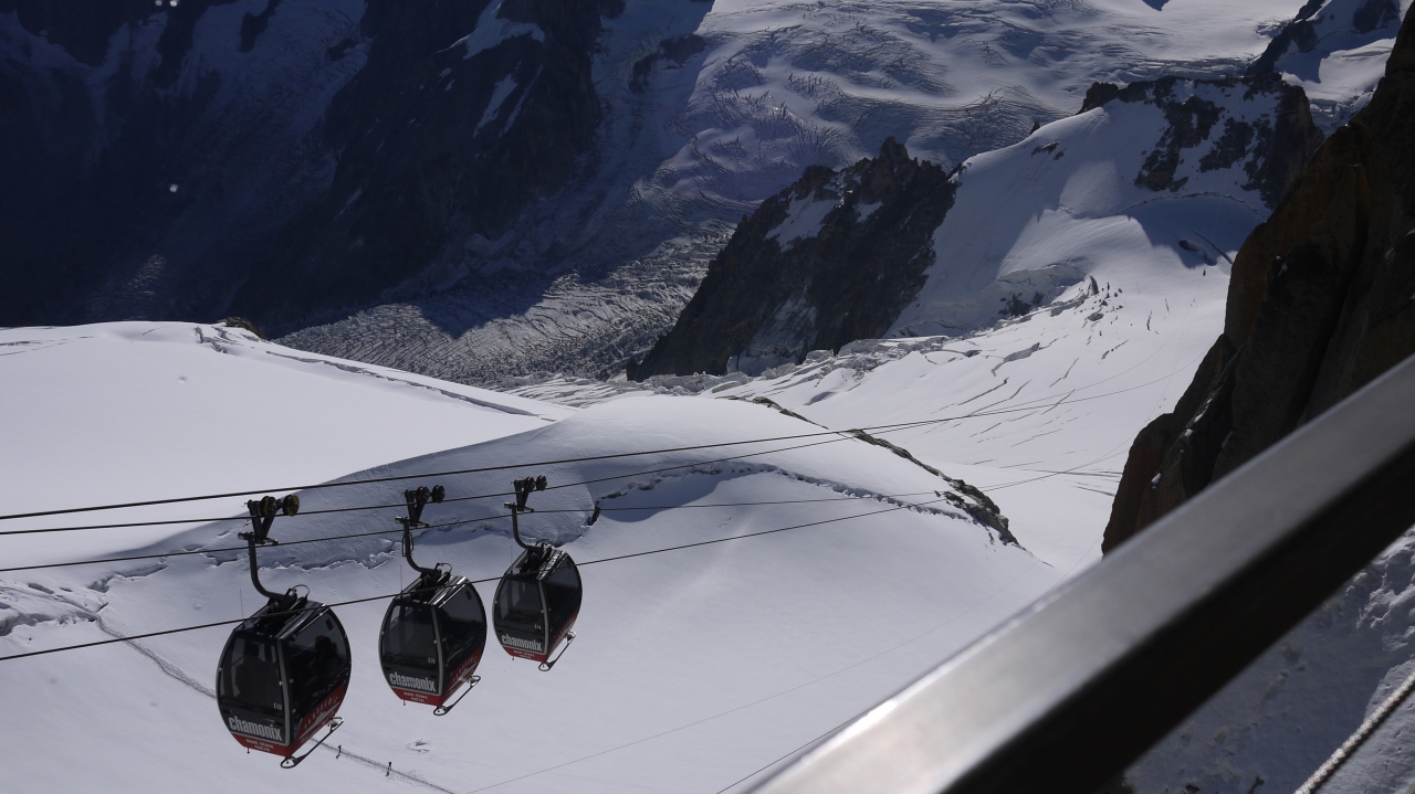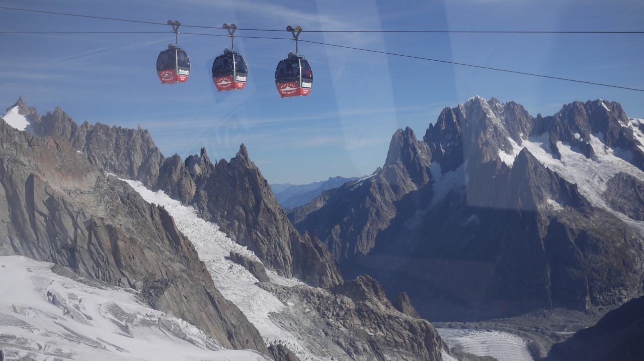 モンブランへ行く時は、イタリア側から3連のロープウエイで行こう!!! 雄大な大氷河の上からアルプスの絶景を楽しみながら展望台へ行ける。途中の景色ががすごいんです。