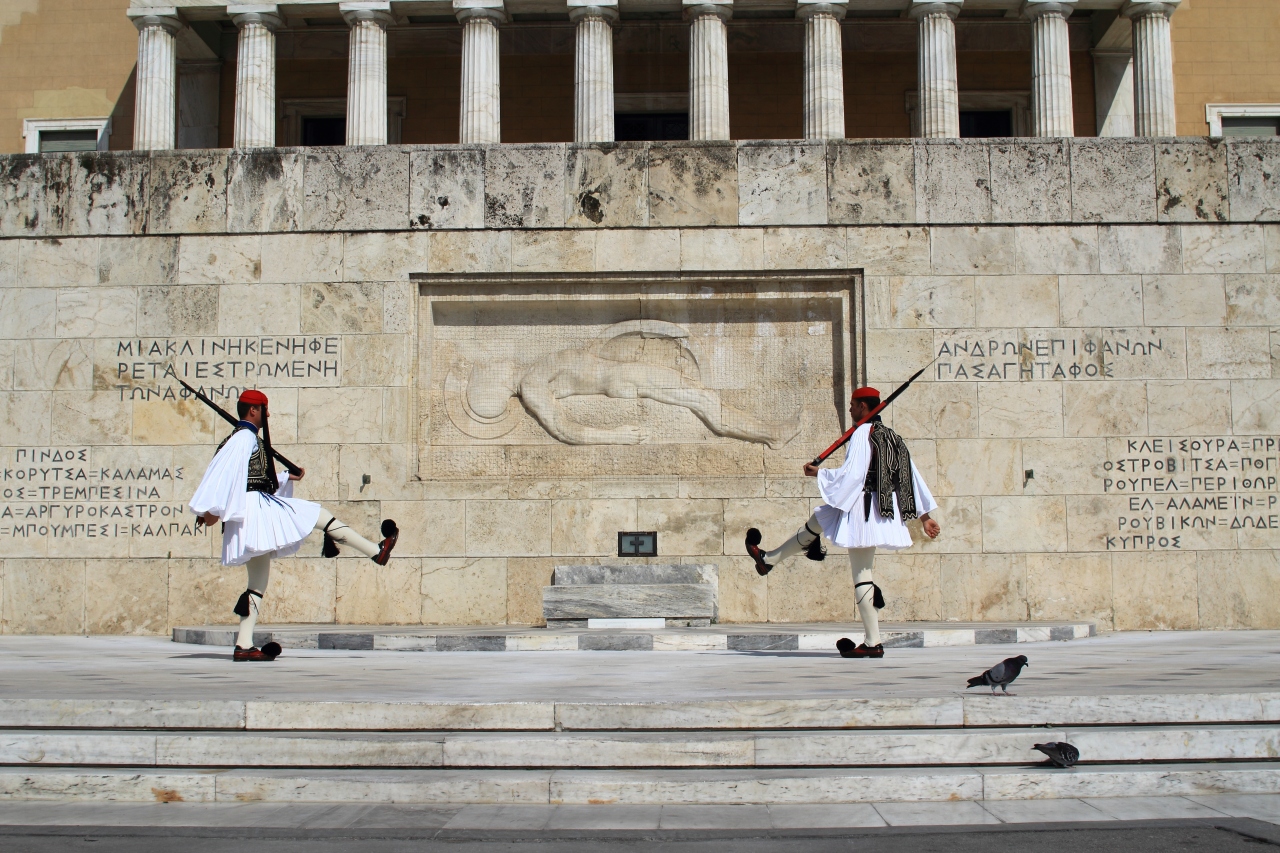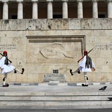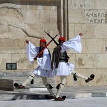 国会議事堂の前にある独立戦争の時の無名戦士の墓ですが、この前には昔の民族衣装を着た衛兵がたっており、1時おき?くらいに交代式を行います。