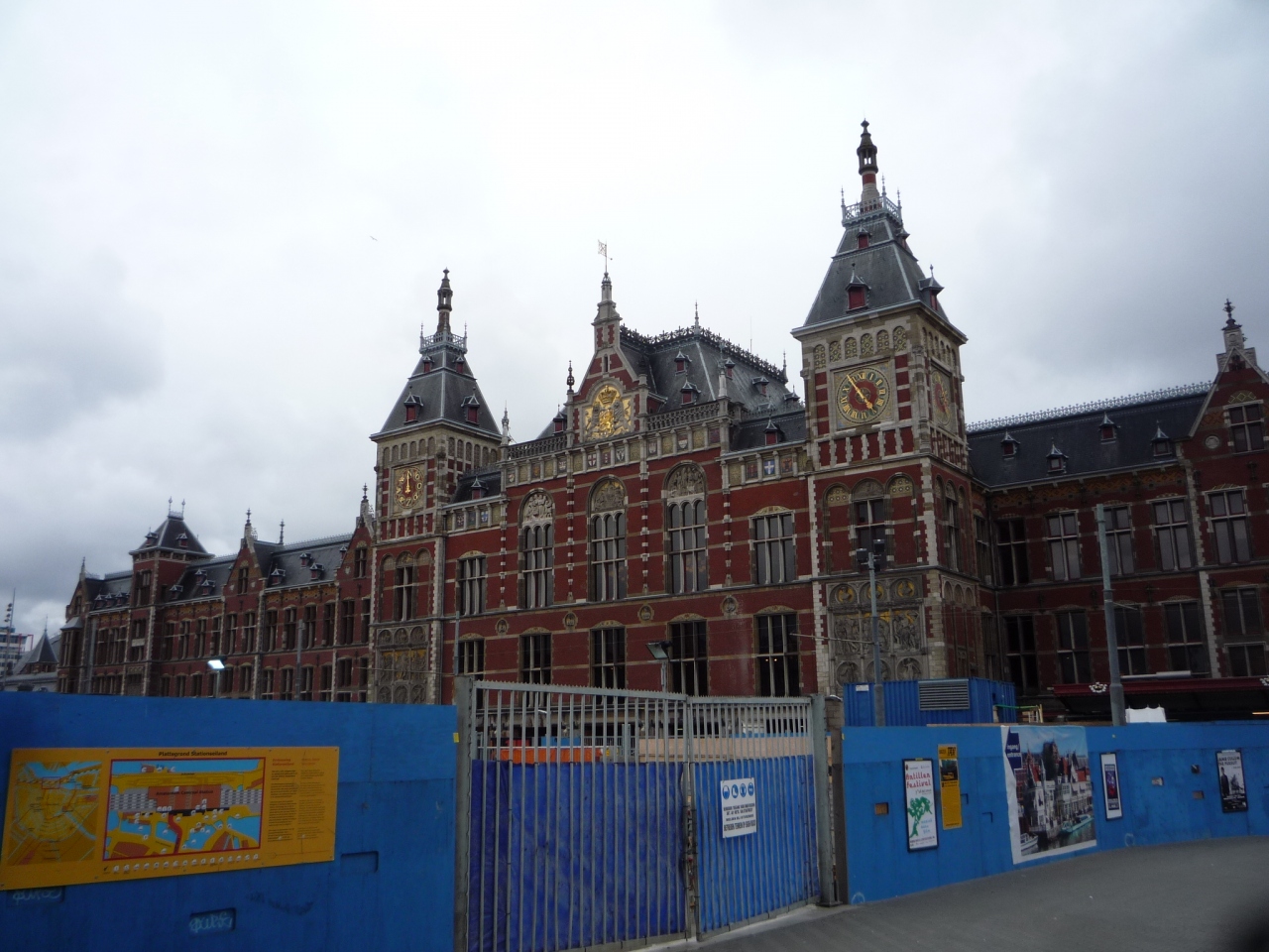 茶色の煉瓦が素敵なアムステルダム中央駅。