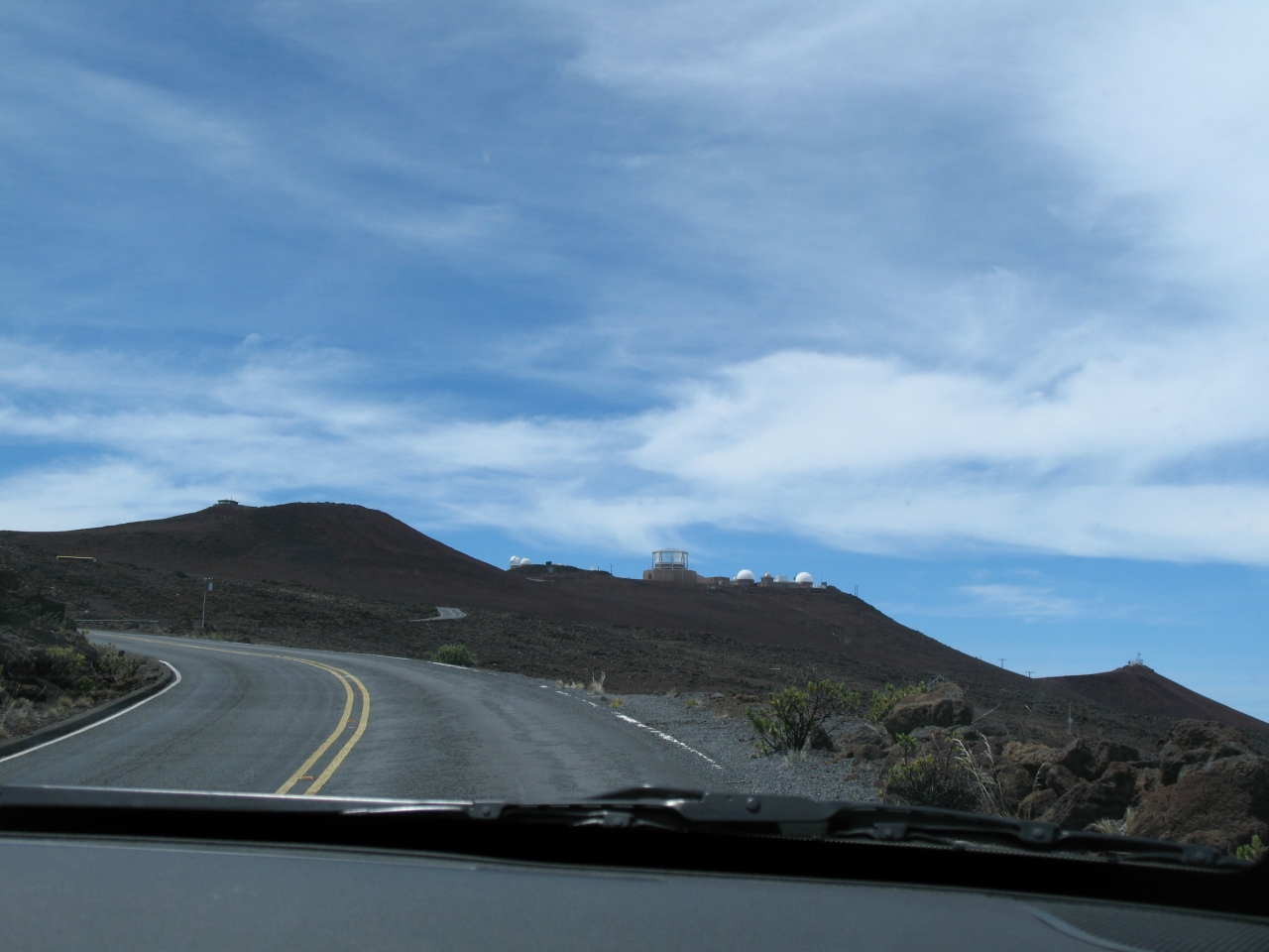 カアナパリからカフルイまでは車で約40分、Kマートの交差点を右折しR36 Hana Hwyに入り、なだらかですがかなり登りながら走るとR37 Haleakala Hwyの分岐に来ます。それを右折しR37を走行、しばらく走りPukalaniの町を過ぎたあたりにR37 Kula HwyとR377 Haleakala Hwyの分岐にきたら左折しR377を走行します。のどかな牧場地帯を見ながらしばらく走ると途中にKula Lodgeがありますのでそこで休憩しましょう。ロッジを過ぎてまもなく今度はR377 Kekaulike AveとR378 Crater Rdの分岐に差し掛かります。左折しR378を走行します。あとは一本道です。かなり登っていくと国立公園の入場ゲートがありますので、車1台あたり10ドル支払ってください。このチケットは忘れましたが、何日か有効です。何回も来る人は少ないでしょうが・・・・そばのビジターセンターで高山に慣れるため一休みしてください。頂上まではまだ何度も上りのカーブがありますが、間違いなく着けます。初めての方は外灯がありませんので、昼間来ることをお勧めします、またダウンヒルバイクの集団が降りてきますので、注意して走行してください。