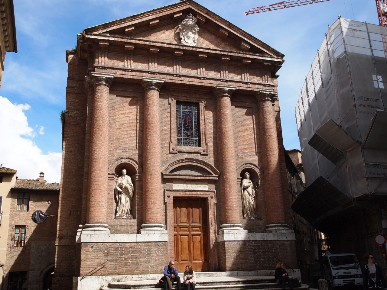 赤茶色のレンガつくりの建物がモンテ・バンキ銀行です。