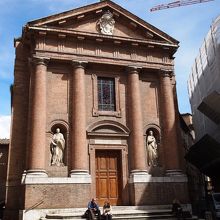 ファサードは対になる2本の列柱があるネオクラシック様式の建物です。