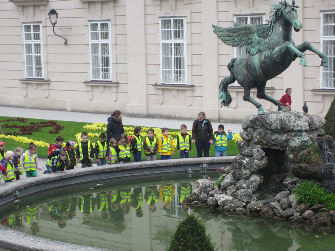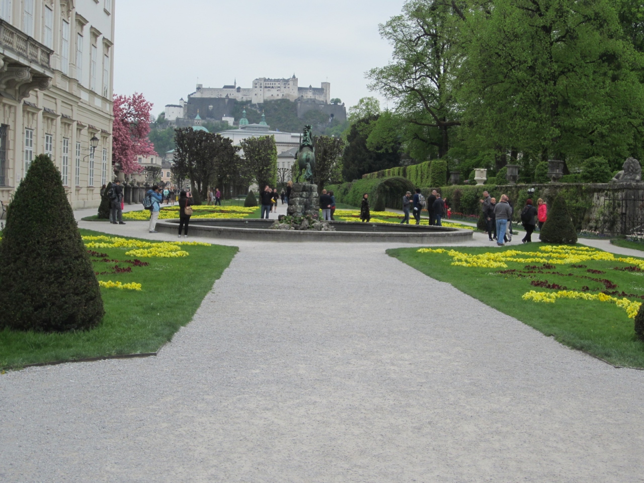ドレミの歌の名場面がたくさんあります。馬の噴水、バラのアーチ、入り口の門、あんまり可愛くない小人像・・・