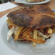 フライドポテトまで一緒に挟まっていて食べるのがちょっと大変(笑)