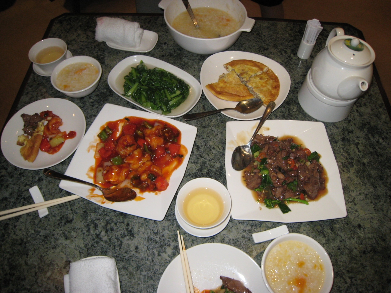 この日は昼は1日観光のと途中で梅子餐廳(南京店)団体専用に寄りましたが、皆さんが書かれて居る様に余り美味しく有りませんでした。夕食は偶然台湾の友達と梅子餐廰(林森店)に行きましたが、日本人はほとんど居なくて台湾人ばかりでした。料理は空芯菜の炒め物、牛肉と野菜の炒め物、エビチリ、卵焼き、お粥を食べましたが大変美味しかったです。料金もそれなりに高かったと思います。