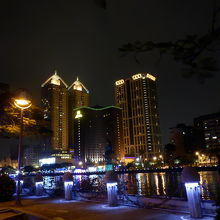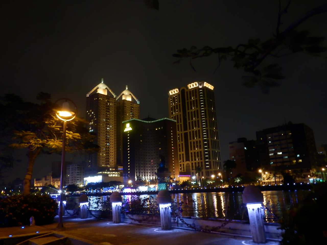 愛河沿いは公園のように散歩道が整備されていますし、サイクリングロードもあるので、お散歩でも自転車でも楽しめると思います。夜は散歩道も、川に架かる橋もライトアップされていて綺麗でした。近くの高層ビルの夜景も楽しめました。