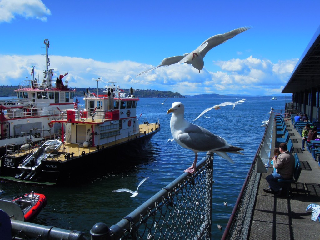 Pike Place Marketから海側に徒歩5分程度。水族館、公園、ファストフードなどのレストラン、お土産屋さんなどがあり、クルーズツアー、ウォタータクシーも利用できます。海側をセーフコフィールド方面へ歩いていくとPioneer Squareもすぐです。