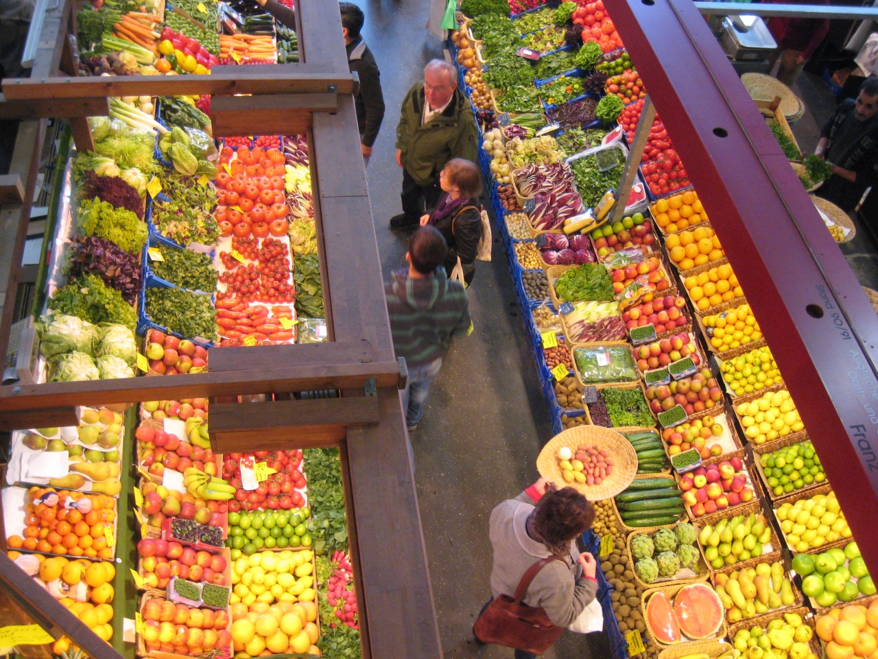 レーマー広場から歩いて行けます。入り口が少し判りづらいかも知れませんが、出入りする人が多いので判ると思います。海外に行くと出来るだけ市場に行くのですが屋内にある市場は初めてでした。中にはチーズ、野菜、肉なんでも食材が揃いそうです。ホント、海外の市場はにぎやかですね。、