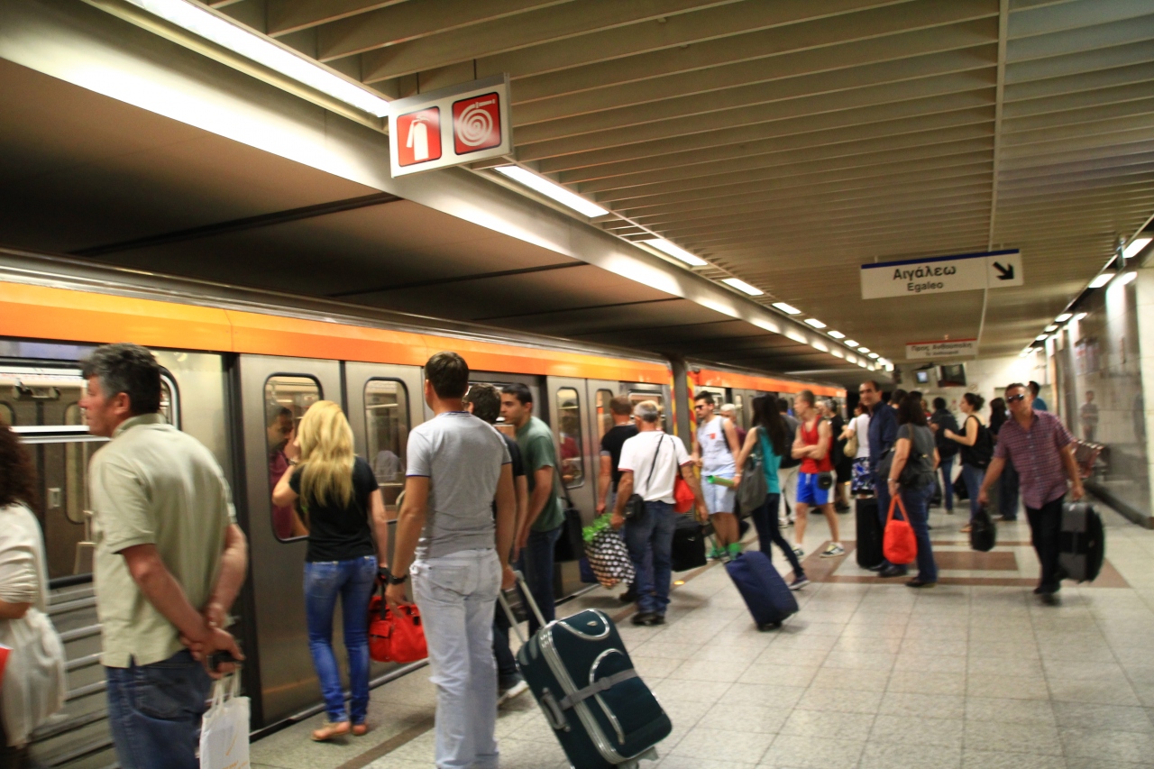 アテネでの空港からの移動はメトロ3号線が一番楽です。空港からは他にも一般鉄道、バス、タクシーとありますが、アテネのタクシーは非常に悪いとこともあり、また市街からの距離も遠いためとんでもない値段になる可能性もあるため、夜着ならば若干高くても空港前のソフティルホテルに泊まって翌日市内移動のほうが良いかもしれません。