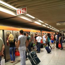 アテネ空港の地下鉄乗り場は、空港から高架を渡った先にありますが、郊外列車と同じホームですので、最初は戸惑いましたが、駅の人に聞いたところ、ホーム番号でわかれているようです。
